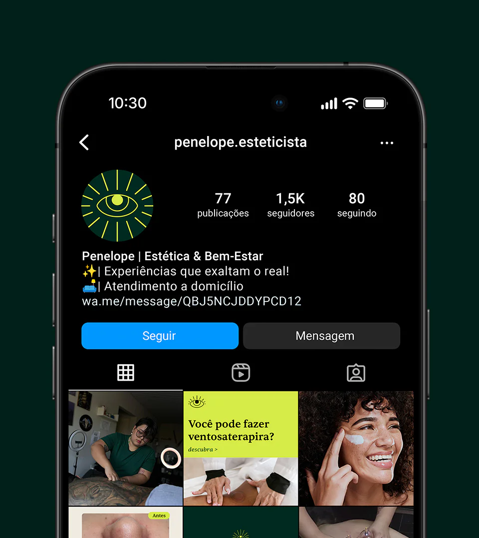 Sua especialidade envolve a autoestima das pessoas, com serviços que vão desde massagens e depilações até o tratamento de acnes. Em um mundo cheio de estímulos, distrações e comparações, Penelope acredita que pausar seja uma forma de equilibrar saúde mental e corporal.