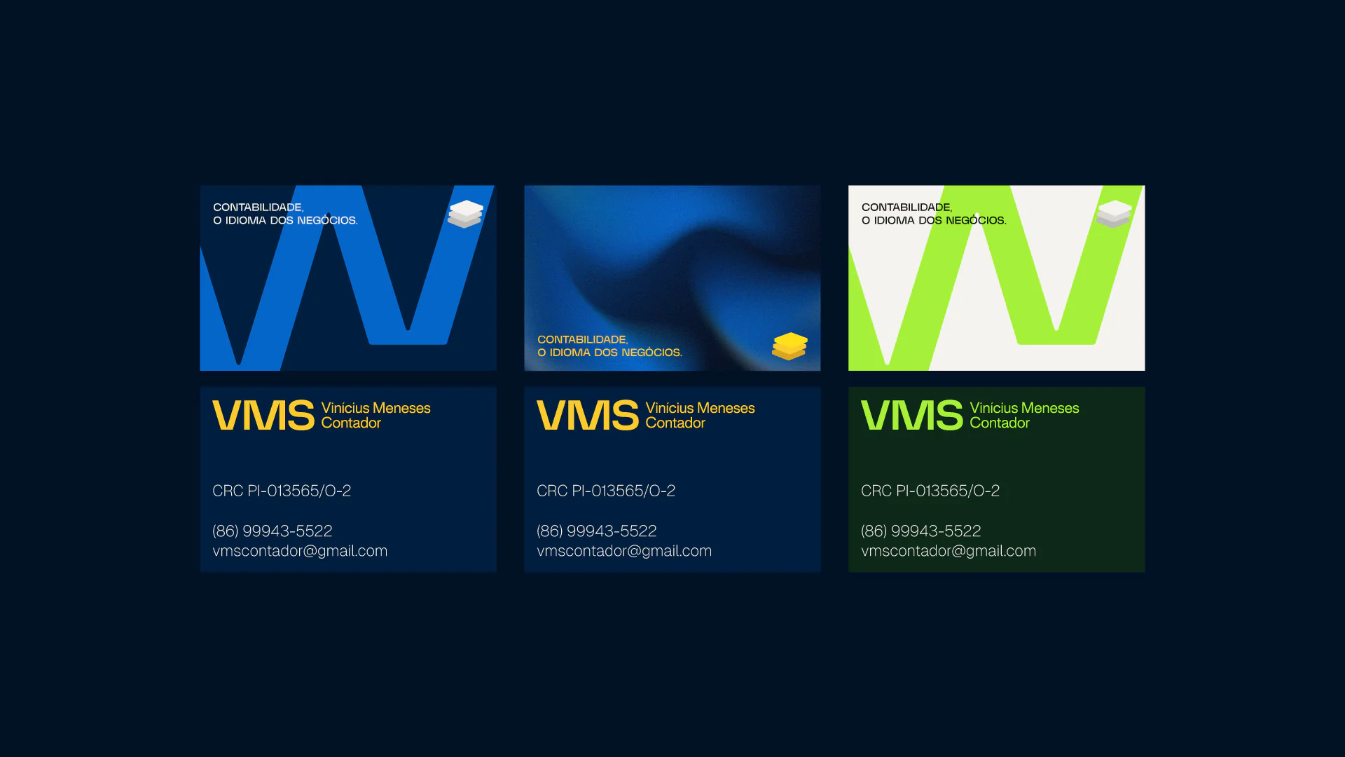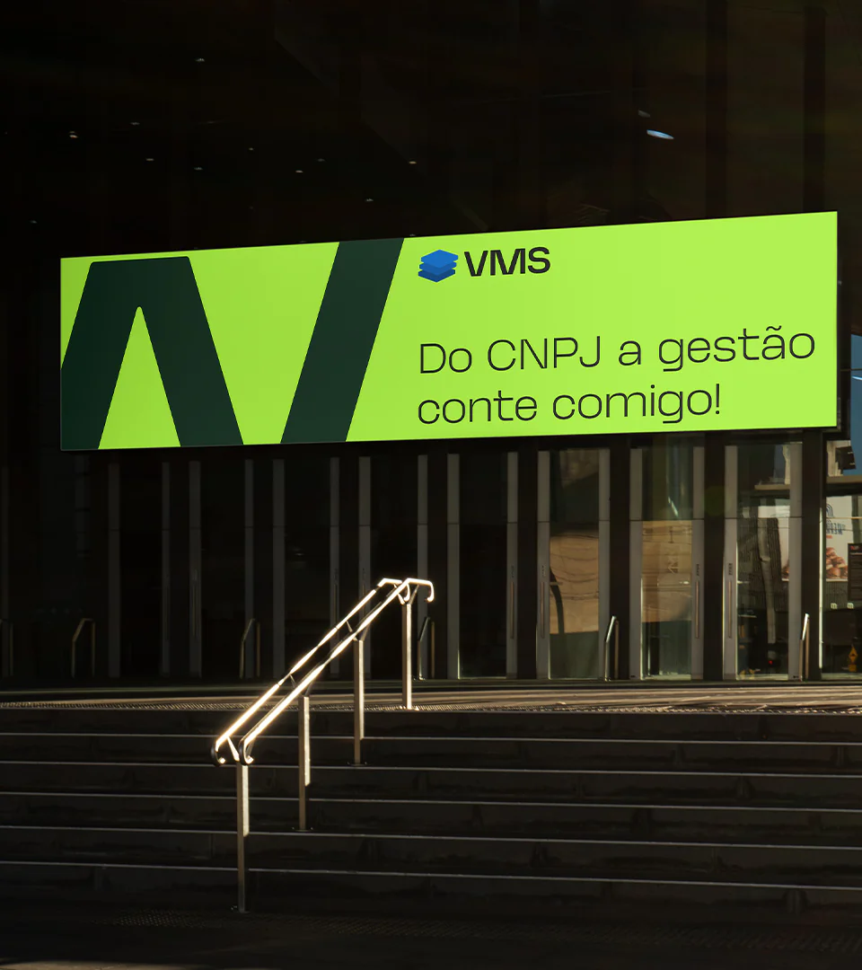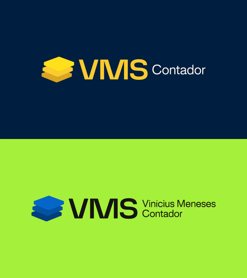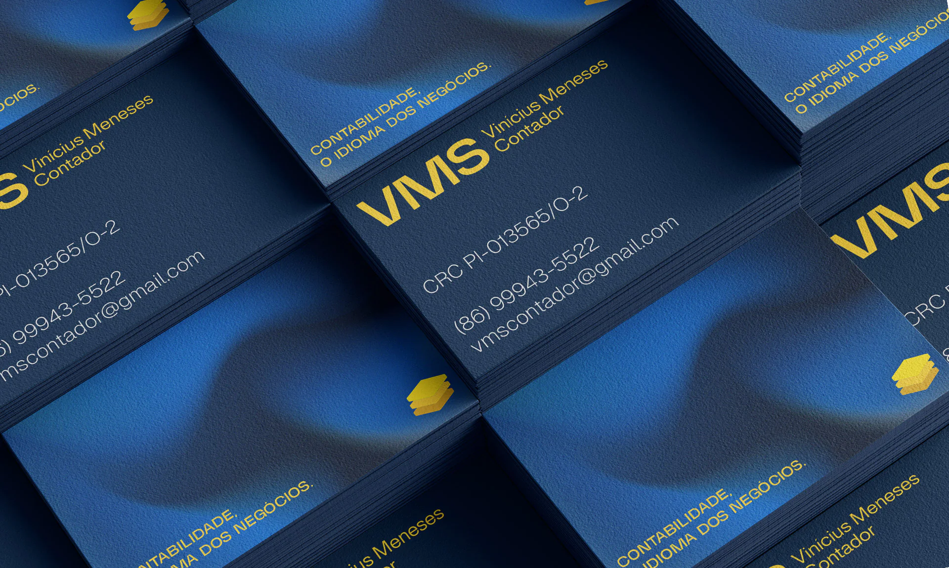 Abreviamos o nome Vinícius Meneses de Sá para VMS, afim de reduzir a curva de aprendizado do público e aumentar as possibilidades de aplicação da marca.