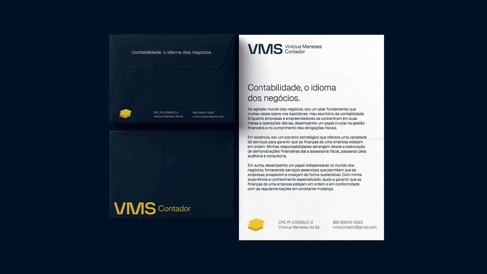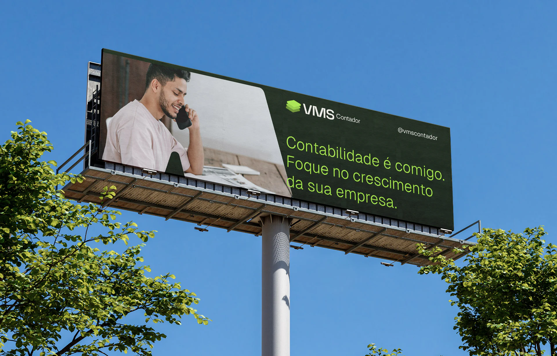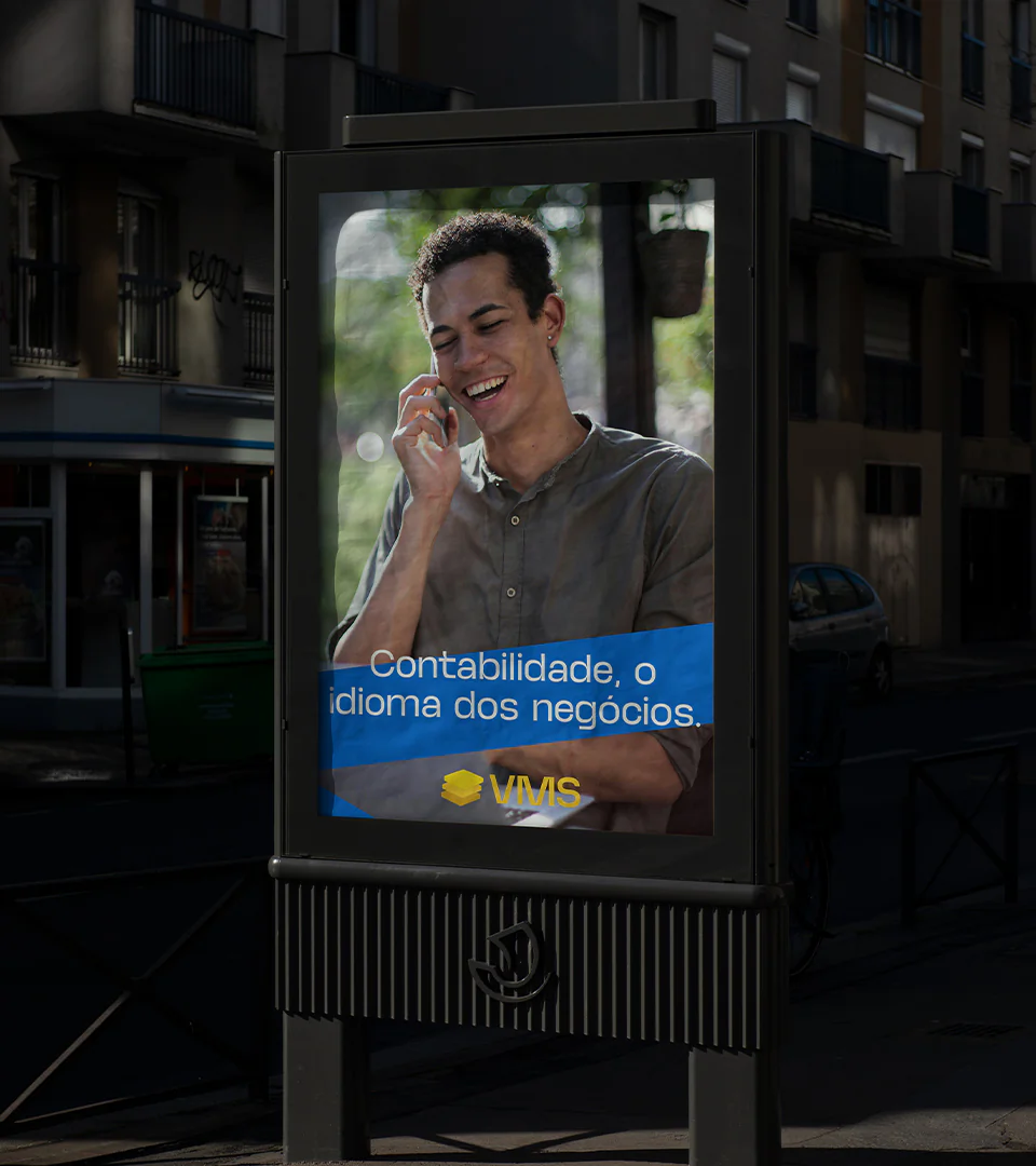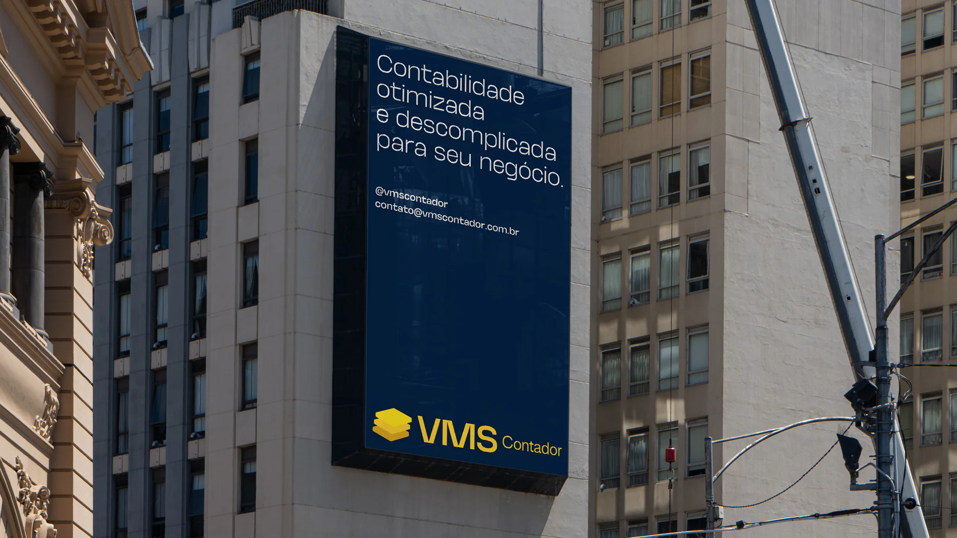 Abreviamos o nome Vinícius Meneses de Sá para VMS, afim de reduzir a curva de aprendizado do público e aumentar as possibilidades de aplicação da marca.
